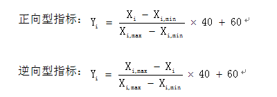 其中Yi为第i个指标的个体指数,Xi为该指标在报告期的绿色发展统计指标值,Xi,max为该指标在报告期10个县(市)绿色发展统计指标值中的最大值,Xi,min为该指标在报告期10个县(市)绿色发展统计指标值中的最小值。