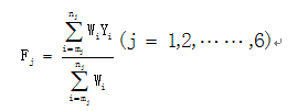 (二)对个体指数进行加权,计算6个分类指数。计算公式为: