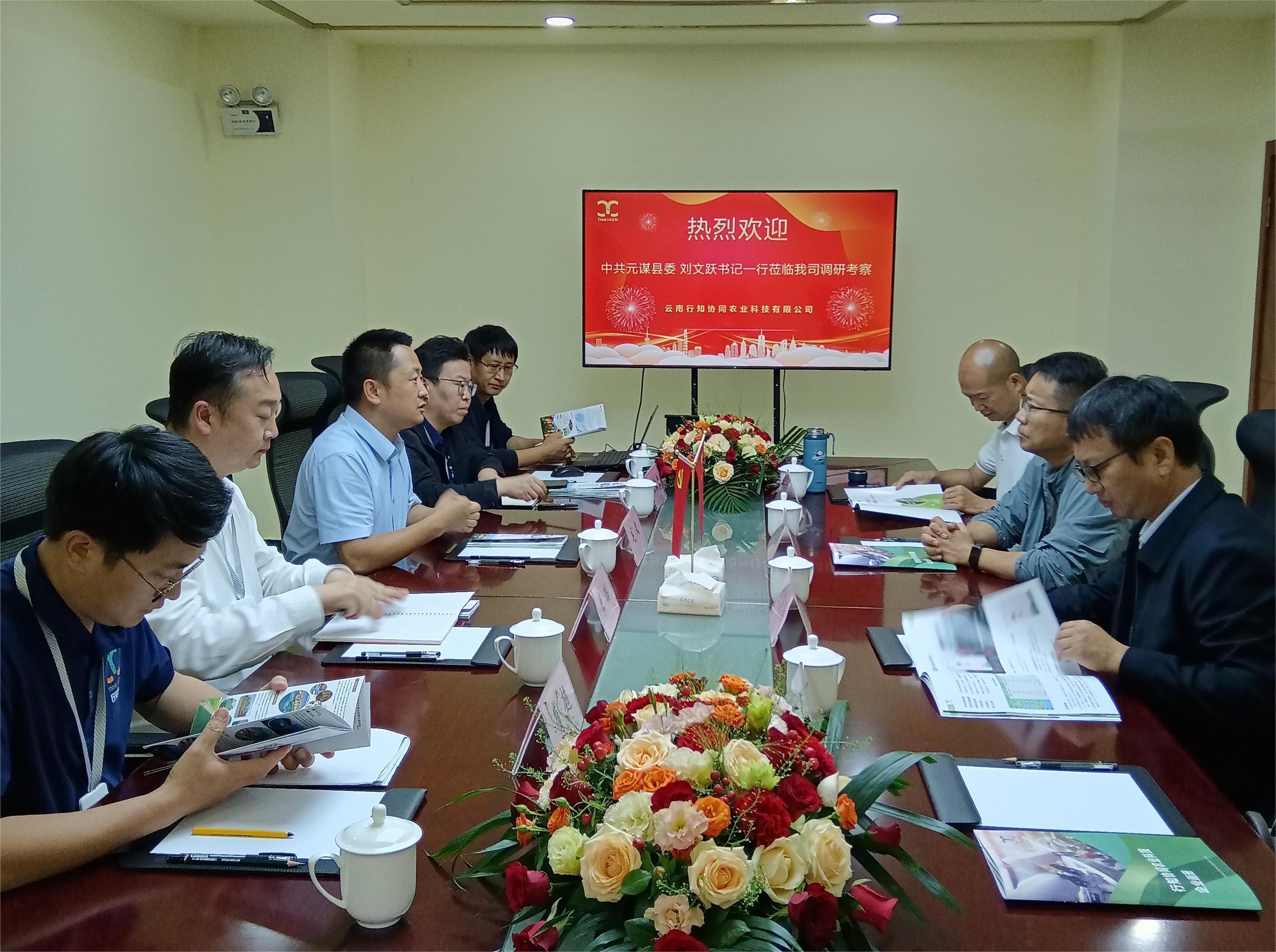 在云南行知协同农业科技有限公司,考察组听取了企业发展历程、智能水肥一体化装备制造、产业发展布局以及市场拓展情况的详细介绍。该公司属于高新技术企业,拥有设施农业工程、人工智能、物联网等技术团队,打造了"行知协同®"、 "掌沃数农®"等智能农业相关品牌系列产品,构建了肥滴佳智能灌溉农业科技服务平台,成为国内技术领先的一站式多功能智能农业设施装备制造商。企业规划在元谋投资建设智能水肥一体机、控制柜等相关设备生产线。双方围绕投资合作事宜进行深入洽谈交流,县委书记刘文跃表示元谋农业资源丰富,具备良好的产业发展基础,期待与行知协同农业科技公司携手合作,共同打造智慧农业示范基地,企业负责人表示对元谋农业产业发展潜力和优良营商环境充满信心,将加快工作进度推动智能水肥设施装备制造项目尽快落地元谋。
