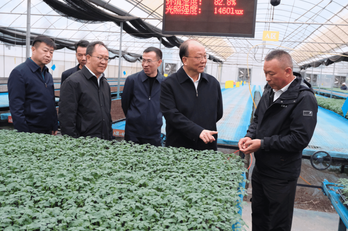 调研组在元谋县现代种业科技园育苗工厂调研