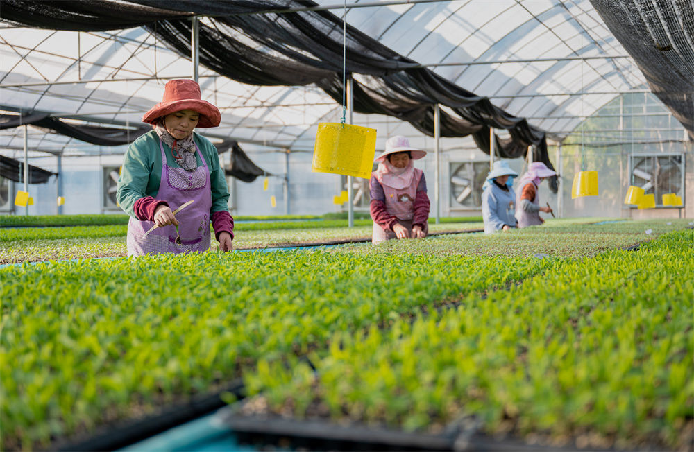 图为工人在云南楚雄元谋现代种业科技园内进行育苗工作。元谋县委宣传部供图