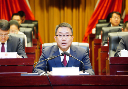 1月21日上午,县十八届人大第三次会议第四次全体会议在县图书馆报告厅召开,县人大常委会主任周应张主持,全体人大代表、列席人员参加会议。
