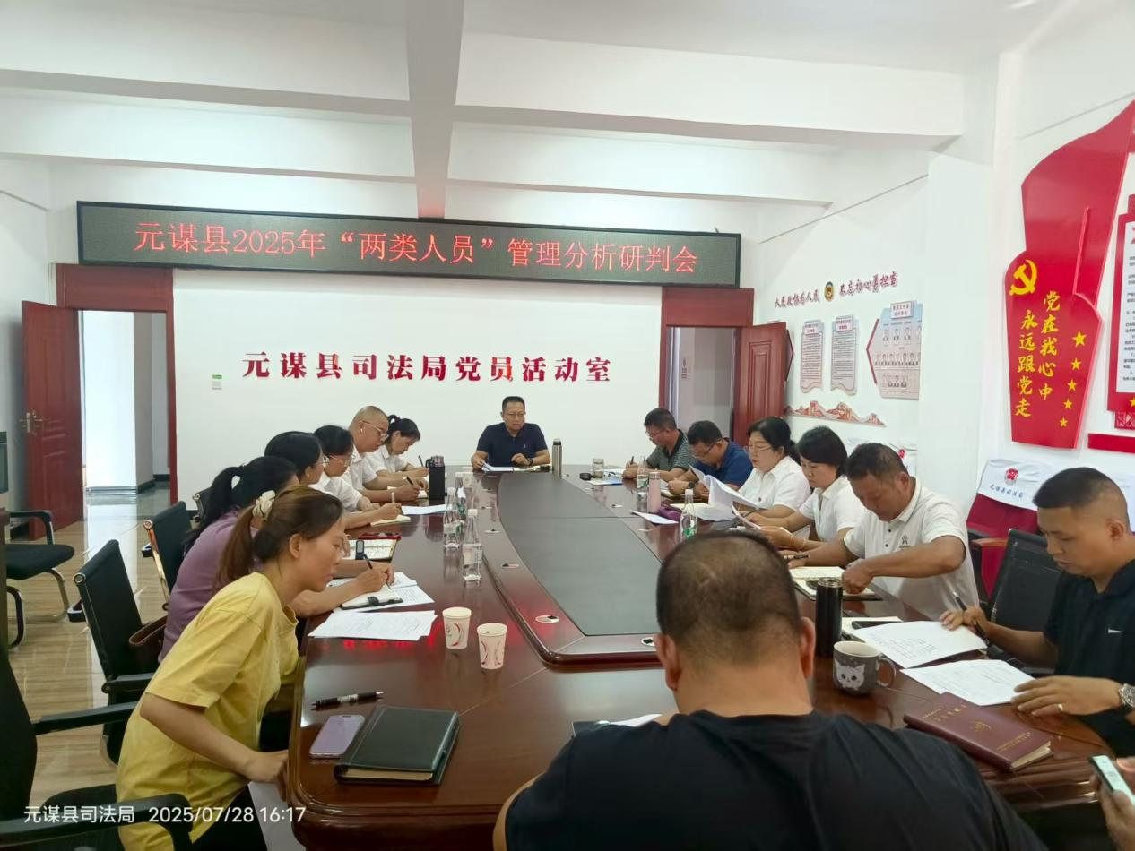 为认真贯彻落实有关工作要求,做好“两类人员”管理工作,筑牢安全稳定防线。7月28日,元谋县召开2025年“两类人员”风险分析研判会。县司法局主要领导、分管领导、社区矫正股全体工作人员、人民参与和促进法治股全体工作人员、10个基层司法所所长共计28人参加会议。10个基层司法所所长围绕“两类人员”管理存在问题和下步打算进行发言,并逐一开展风险分析研判。