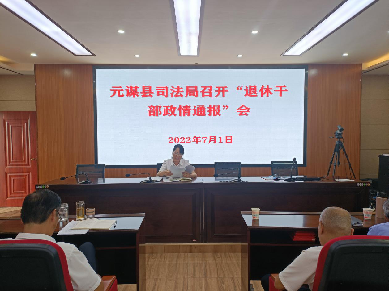 三、召开一场退休干部政情通报会。组织元谋县司法局退休党支部全体党员进行今年上半年政情通报,把全局各项工作情况通报到每位退休干部,引导他们一如既往地支持全县司法行政工作,围绕坚持党的全面领导、弘扬伟大建党精神、讲好党的百年奋斗重大成就和历史经验的故事、加强基层治理、践行社会主义核心价值观、关心下一代工作等方面发挥积极作用,继续为“十四五”全县经济社会高质量发展发光发热。
