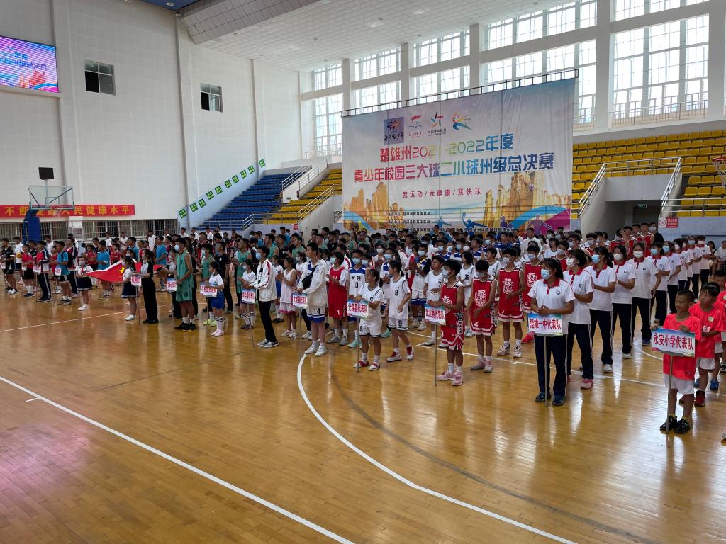 开幕式上,楚雄州人民政府副州长王秀江致开赛辞,并宣布楚雄州2021—2022年度青少年校园三大球二小球州级总决赛篮球足球排球比赛开赛。