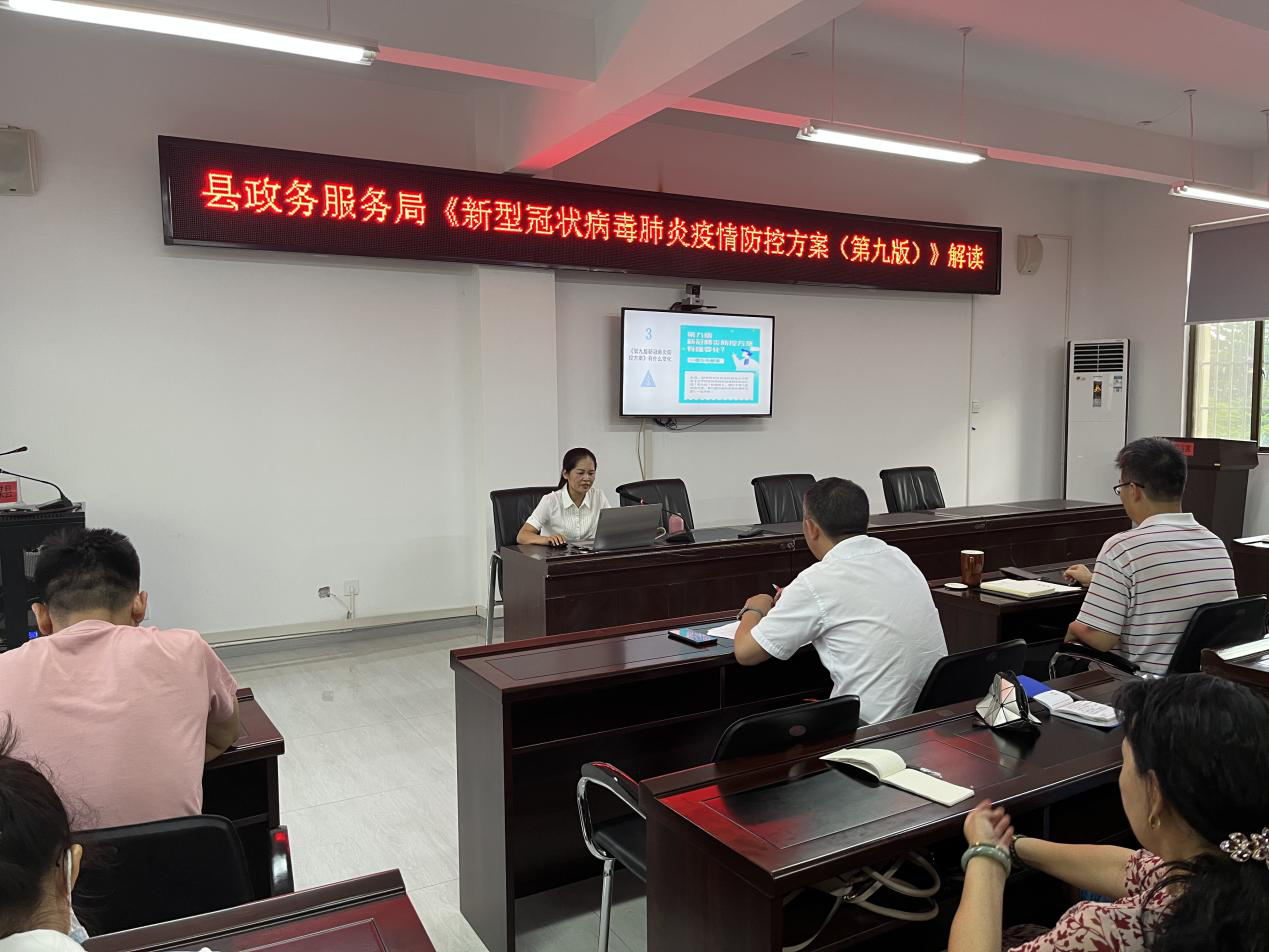 为科学精准做好疫情防控工作,筑牢疫情防控“安全网”,8月3日晚,县政务服务管理局开展了以《新型冠状病毒肺炎防控方案(第九版)》解读为主要内容的干部职工业务素质能力提升培训会议。