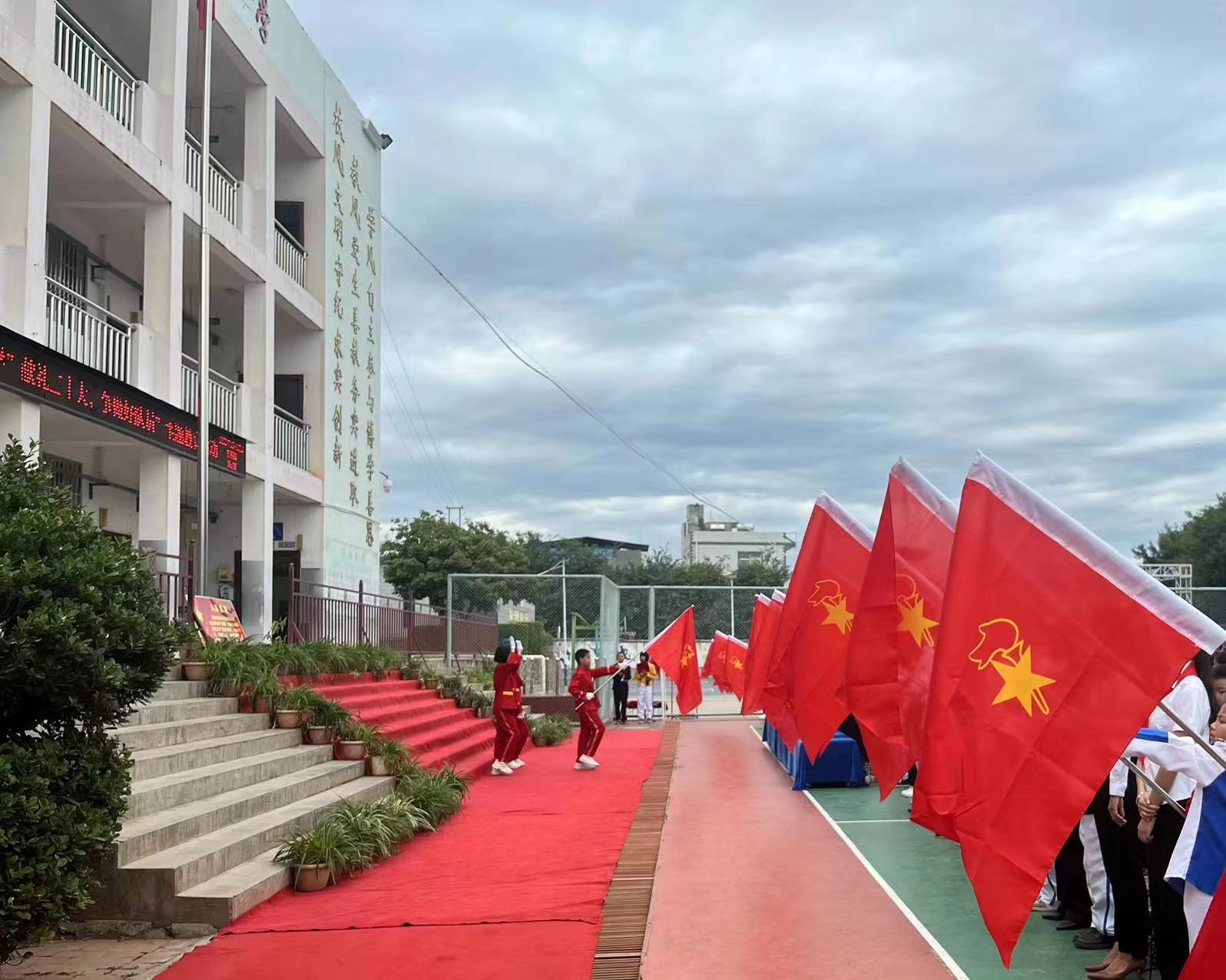 随着庄严有序的出旗曲,朝气蓬勃的旗手伴乐出旗,少先队建队日活动正式开始。首先进行庄严的升旗仪式,全体师生同唱国歌同升国旗,嘹亮的歌声表达师生对党对祖国无比骄傲和自豪。接着举行新队员入队仪式,在辅导员老师的带领下重温入队誓词,誓言铿锵有力;在学习少先队建队知识之后,来自一、二年级的80名孩子光荣加入了中国少年先锋队,队员代表深情朗诵诗歌《红领巾在心中飘扬》,表达对党的二十大胜利召开的真挚祝福。最后党员教师代表对师生们围绕迎接党的二十大胜利召开,结合少先队建队日,要求以少先队中队为基本单元,不断深化学习贯彻习近平新时代中国特色社会主义思想,用党的创新理论武装全队、教育少年儿童。