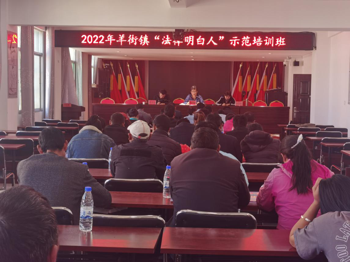 2022年11月10日,羊街镇举办2022年“法律明白人”示范培训班。培训班上政法委员、副镇长张龙宝同志就“法律明白人”的工作职责、指导思想和工作原则等方面对全镇52名“法律明白人”进行了系统的培训。同时对“法律明白人”工作提出了工作要求。一是要强化典型培养。10村党总支(支部)和全镇各级各部门要发挥示范引领作用,认真总结“法律明白人”培养工程经验,挖掘选树先进典型,推动“法律明白人”培养工程持续深入开展。二是要加大对工作动态及其成效的宣传报道,重点突出宣传先进事迹,营造全社会关心、理解、支持、参与“法律明白人”培养工作的良好社会氛围。