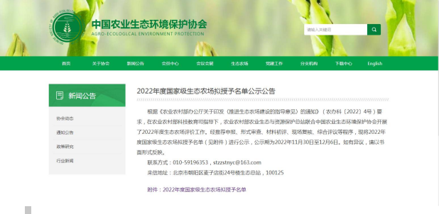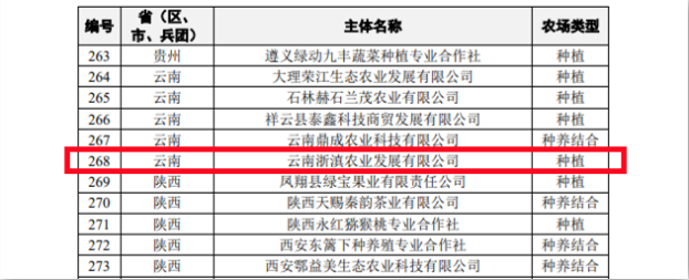 近日,农业农村部农业生态与资源保护总站与中国农业生态环境保护协会联合公布了2022年度国家级生态农场拟授予名单,云南浙滇农业发展有限公司入选,现正进行公示。