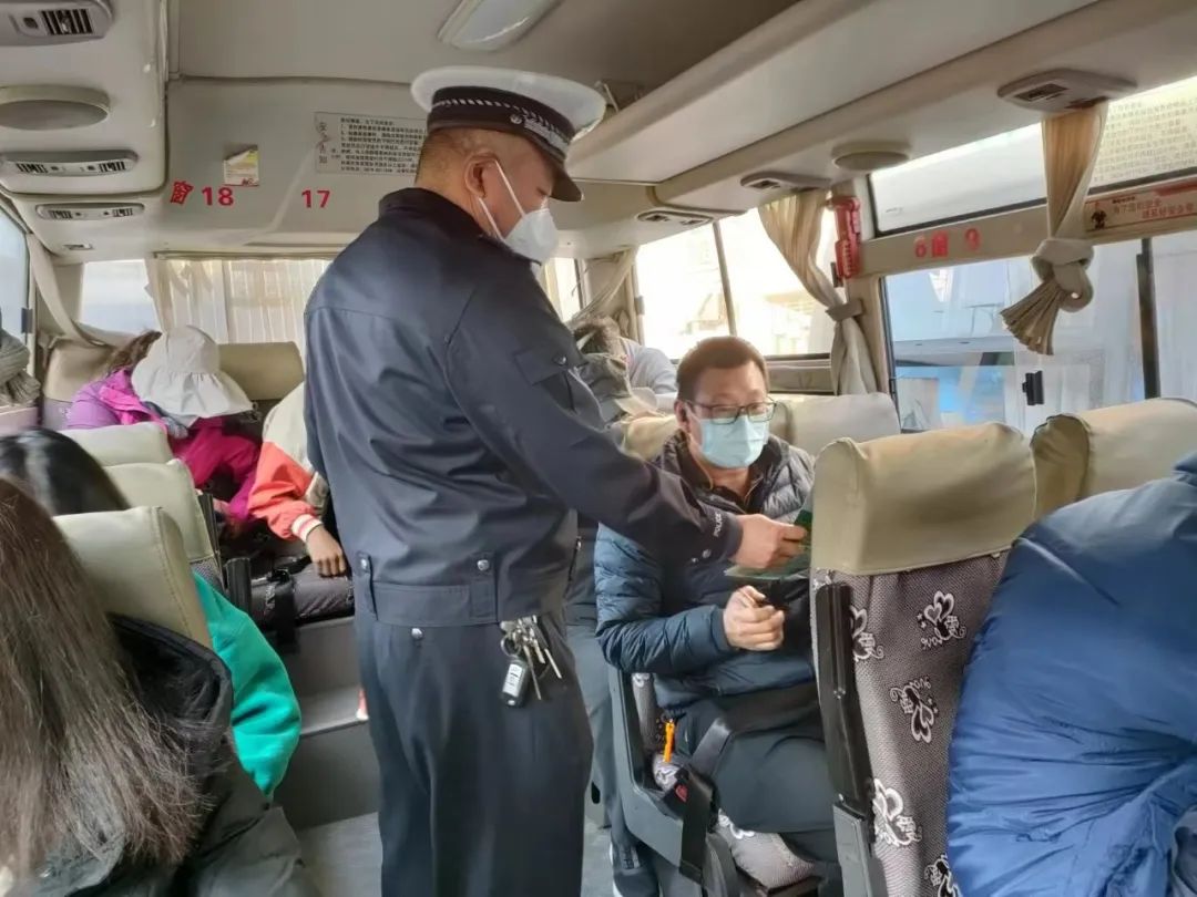 交警大队组织警力深入辖区各客(货)运公司,重点对企业安全责任体系、驾驶人教育工作、GPS动态监管系统、相关安全生产工作台账等情况进行检查,分别与驾驶人、企业安全负责人签订交通安全责任状、承诺书。同时,在辖区108、元双路等重点路段设立临时安全检查点,对辖区过往7座以上客运车辆严格落实逢车必查、登车检查、逢车必登记等规定,严防客车超员、疲劳驾驶、不按规定使用安全带等交通违法行为。