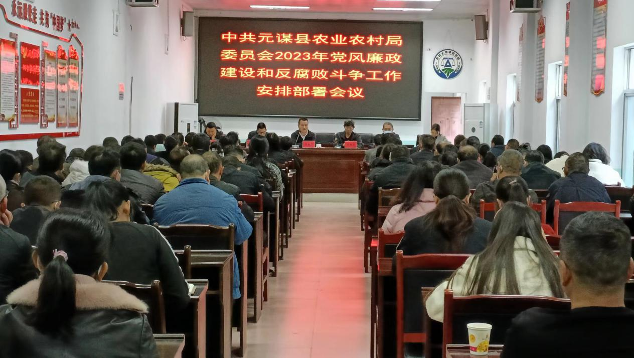 2023年2月6日上午,元谋县农业农村局党委在机关大会议室召开中共元谋县农业农村局委员会2023年党风廉政建设和反腐败斗争工作安排部署会议,以及中共元谋县农业农村局委员会2023年第三次(扩大)会议暨第一期警示教育大会。局党政班子成员,局各股室、各单位主要负责人,机关各党支部书记、副书记,及全体干部职工共96人参加了会议。