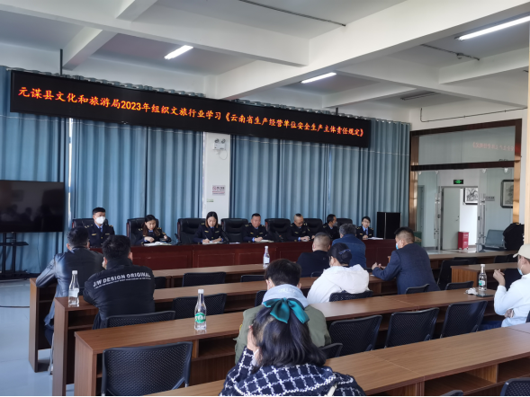 为了提高全县文旅市场经营单位负责人的法律意识,督促相关单位依法守法经营和安全经营,切实维护全县文旅市场健康有序发展。本着“管行业必须管安全”“管业务必须管安全”“管生产经营必须管安全”和“谁主管谁负责”“谁执法谁普法”的原则,元谋县文化和旅游局文化市场综合执法大队结合文旅行业集中开会开展法律法规学习。