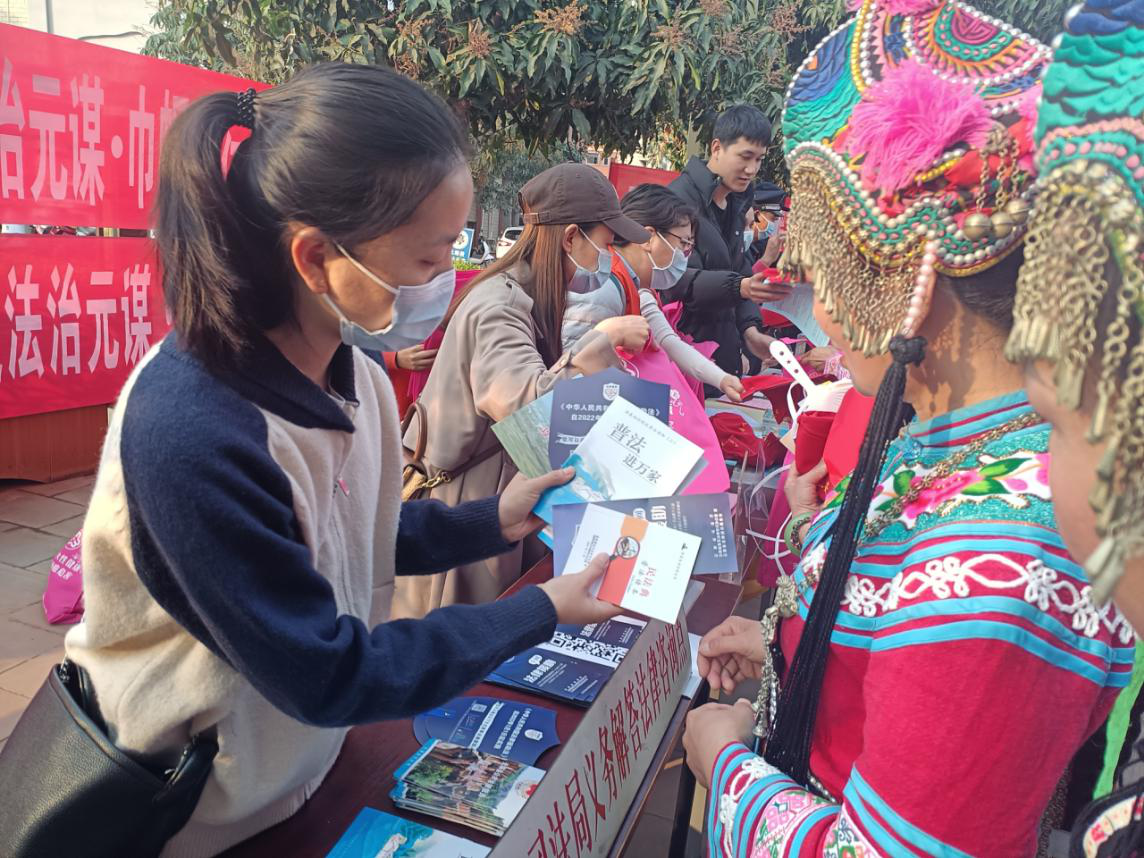 此次活动聚焦省、州、县普法强基补短板专项行动工作要求,立足广大妇女群众的法治需求,通过设立法律咨询台接受现场咨询、发放法治宣传资料及法治宣传品等方式,重点宣传男女平等基本国策、《中华人民共和国民法典》《中华人民共和国妇女权益保障法》《中华人民共和国未成年人保护法》《中华人民共和国反家庭暴力法》及法律援助、公证服务和《普法进万家》中与广大妇女群众生产生活息息相关的法律法规,结合婚姻家庭、邻里关系等问题进行面对面答疑解惑,有效提高普法的针对性和实效性,引导广大妇女群众尊法学法守法用法,学会运用法律武器维护自身合法权益,推动形成尊重妇女、关爱妇女、保护妇女的良好法治氛围。活动共发放宣传资料及法治宣传品500余份,接受法律咨询63人次。