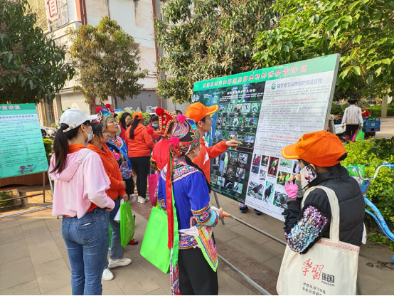 活动现场,过往群众积极参与,主动观看展板内容,了解国家重点保护野生动植物及云南常见的国家重点保护野生植物、兰科植物和药用植物,学习野生动植物保护知识,形成了良好的活动氛围。