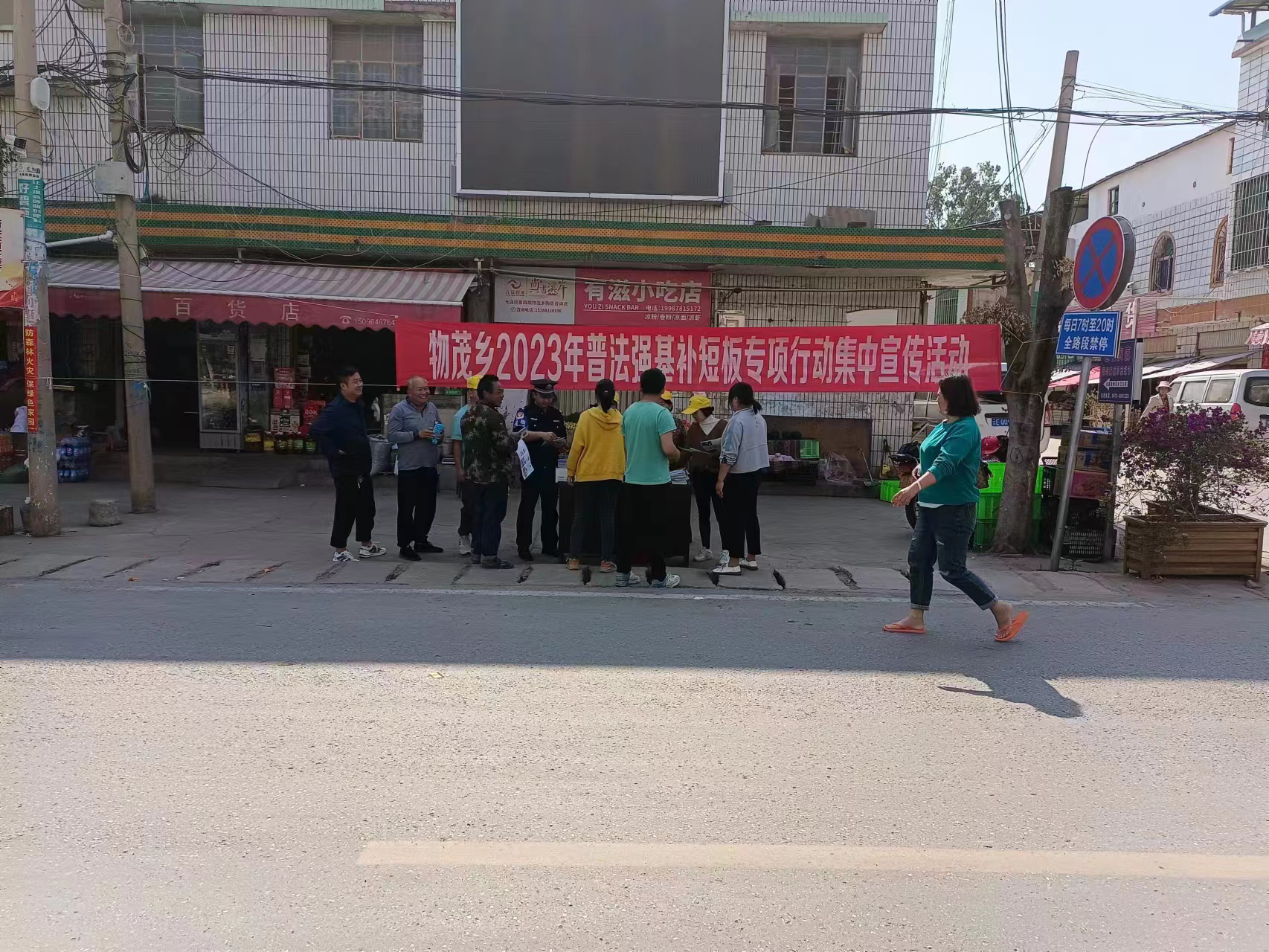 为进一步落实普法强基补短板专项行动,提升广大农村群众法治意识,营造浓厚的全民尊法学法守法用法的法治氛围。近日,物茂乡普法工作队组织开展普法集中宣传活动。
