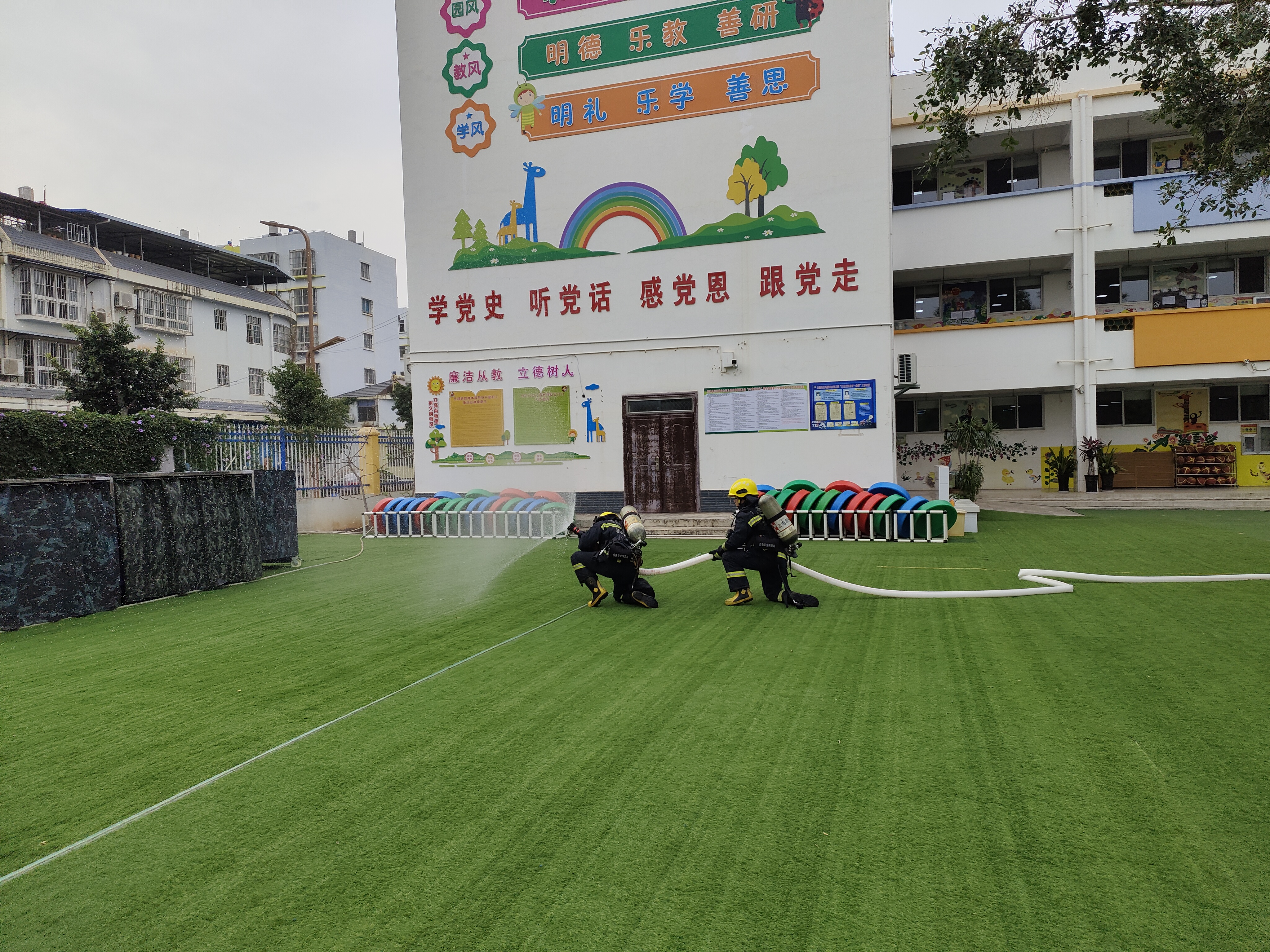 此次演练让孩子们身临其境地了解火灾危害及自救措施,使全体师幼坚守安全底线,扛牢安全责任,筑牢安全防线,取得了预期的效果。