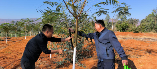此次调研活动,主要对2022年丙令分场基地种植的凤凰木、芒果、铁刀木、云南梧桐等林木开展修枝、浇水、涂抹石灰浆、除草等抚育工作,切实改善乡土树种生存环境,创造良好的水、土、肥、气、热等条件,保障种质资源圃内的乡土树种茁壮成长、迅速成材。
