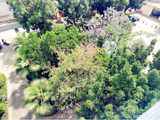 走进元谋县林草局,只见机关院区干净整洁,车辆停放规范整齐,停车区、休息区、球场边随处可见一排排、一棵棵或高或粗的树木、苍翠挺拔、郁郁葱葱。藏在花园中的蓝花楹、腊肠木、美丽异木棉在绽放的季节,蓝的、黄的、粉紫的团团簇簇、层层叠叠,上演着4、5月份夏日院落浪漫的一抹风情。迈上办公大楼,楼梯平台、楼层过道、办公室内均放置着多盆绿植,与机关文化墙互相辉映、相得益彰。