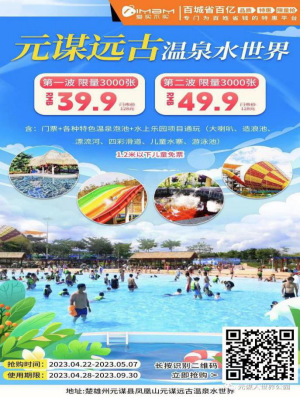 夏天的正确打开方式就是玩水,元谋人世界公园远古温泉水世界4月28日酷爽回归,激情水上电音狂欢、泡泡秀、水站狂欢、告白巨型花束等精彩活动等你来。这里有众多好玩的水上玩乐项目:四彩滑道、大喇叭、儿童水寨、漂流河、造浪池等。燥热的盛夏,除了空调和西瓜,还有什么比水上乐园和夏天更配呢!识别下方二维码抢购属于你的福利,开启快乐的旅程吧!