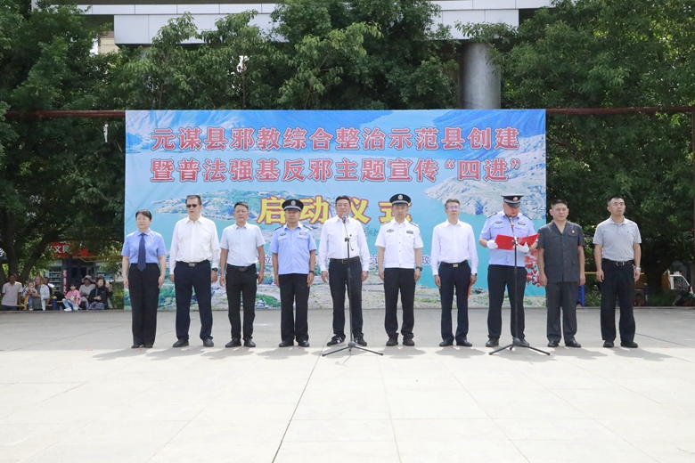 为深入推进普法强基补短板专项行动深入开展,持续加强反邪教警示教育力度,全面提升群众防邪反邪意识和辨别邪教能力。按照县委、县人民政府工作安排,6月15日下午,元谋县邪教综合整治示范县创建暨普法强基反邪教主题宣传“四进”启动仪式在县体育馆广场隆重举行。州委政法委副书记李郁光,州公安局党委副书记,常务副局长田荣峰,州公安局,县委政法委,县人大,县政府,县政协,县人民法院,县检察院,县公安局相关领导出席活动。