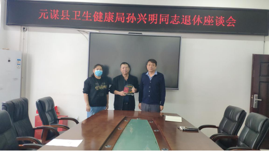 县卫生健康局党政主要领导共同为退休干部颁发荣退证书和纪念品,充分肯定并感谢孙兴明同志这一路走来不忘初心,砥砺前行为卫生健康事业作出的贡献,希望他退休不褪色,永葆初心,发挥余热,祝福他退休生活健康快乐、幸福美满。其他局领导班子成员及部分股室代表也纷纷发表了对孙兴明同志的赠言感言,共同回忆共事历程,并表示将以退休干部为榜样,接好“接力棒”,尽心尽责做好本职工作。孙兴明同志结合自身工作历程发表了退休感言,并表达了对组织关怀、同事关心的感激之情,表示在今后日子里,继续坚守初心使命,时刻关注、关心卫生健康事业发展,希望有机会为服务人民群众发挥余热。