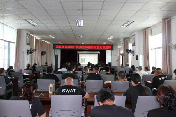 开展一次国防教育知识宣讲。一个小时的队列训练结束后,干部职工集中在会议室观看国防形势教育片,并聆听县人武部政工科干事作《认清安全形,强化国防概念,争做履行国防义务的引领者和践行者》国防安全专题讲座。干部职工纷纷表示,专题讲座是一堂生动而又深刻的国防教育课,进一步增强了干部职工“国家安全、荣誉和利益高于一切”,“国家安全 人人有责”的观念。