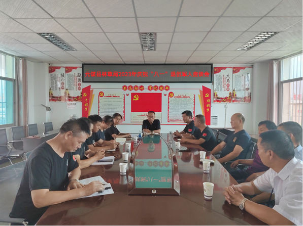 开展一次庆祝“八一”退伍军人座谈会。林草局党组组织在岗的退役军人召开2023年庆祝“八一”退伍军人座谈会。座谈会向退役军人致以节日的祝贺、崇高的敬意和诚挚的慰问,会上充分听取退役军人的意见建议、帮助他们解决实际问题,鼓励他们继续发扬军队的优良传统,在本职岗位上再立新功。座谈会洋溢出军爱民、民拥军,军民鱼水一家亲的和谐氛围。