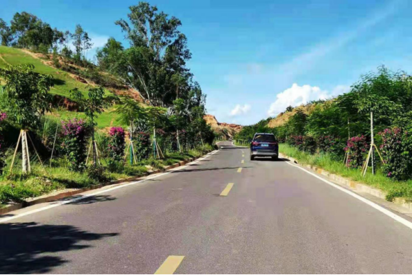 举好扩绿增绿“指挥棒”,整合国家储备林项目等各类资金260万元,栽种凤凰树、三角梅、夹竹桃、蓝花楹等绿化树木7200余株,初步形成公路两侧乔木、灌木、草本等植被高低错落、疏密有序、层次丰富的景观效果。做对生态修复“运算符”,根据各路段不同海拔、不同地质条件等特点,对边坡、土场等区域进行生态修复,宜林则林、宜花则花,达到稳定路基、保护边坡、绿化道路、分流交通等作用。用好补栽补种“工具箱”,抢抓雨季绿化有利时机,对各路段绿地内缺株断带进行全面补植,更换枯死苗木,对裸露地块进行苗木分栽补植,公路“颜值”持续改善,全力营造“人在车里坐,车在景中行”的良好氛围。