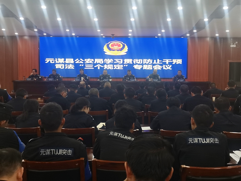 “三个规定”是贯彻落实党中央统筹推进全面依法治国的重要举措,为进一步推动“三个规定”在公安机关的贯彻落实,有效防止、坚决纠正公安机关领导干部及其他内部人员干预、插手案件办理,规范司法行为。1月15日晚,元谋县公安局组织全体民警、职工、辅警专题学习贯彻防止干预司法“三个规定”。