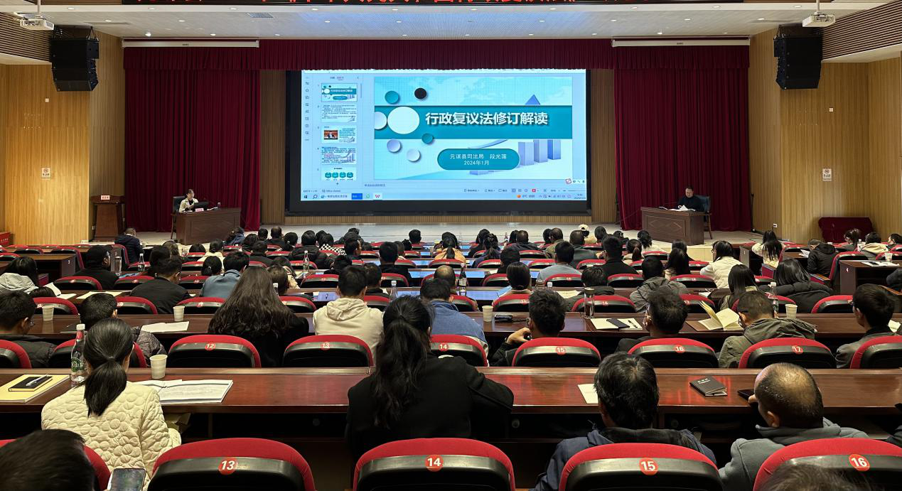 元谋县司法局行政复议与应诉股段光莲同志对新修订的《中华人民共和国行政复议法》进行专题授课,通过对修订的背景和意义、新法特色亮点及行政复议流程等内容进行解读,让参加培训的人员能够更全面、更深入理解《中华人民共和国行政复议法》,为全面依法行政提供智力支持。