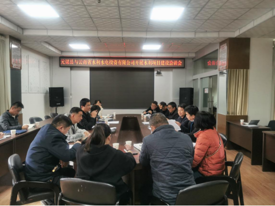 近日,应元谋县水务局邀请云南省水利水电投资有限公司副总经理周锋率队到元谋县就定远河中型水库、鸡冠山小(一)水库等水利基础设项目融资合作进行沟通洽谈。元谋县人民政府分管副县长、县发改局、县财政局等相关领导参加洽谈。