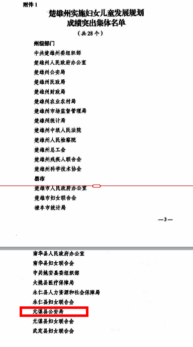 近期,第九次楚雄州妇女儿童工作会议暨州妇女儿童工作委员会第二十四次全体(扩大)会议召开,会上,对全州实施妇女儿童规划成绩突出的28个集体和50名个人进行通报表扬。元谋县公安局榜上有名,获评“楚雄州实施妇女儿童发展规划成绩突出集体”。