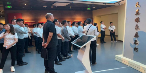 讲解员带领报名活动的游客参观纪年馆内展厅,通过艺术造景、多媒体设备、VR场景还原等手段结合红色文化宣讲的方式给游客带来不一样的体验。