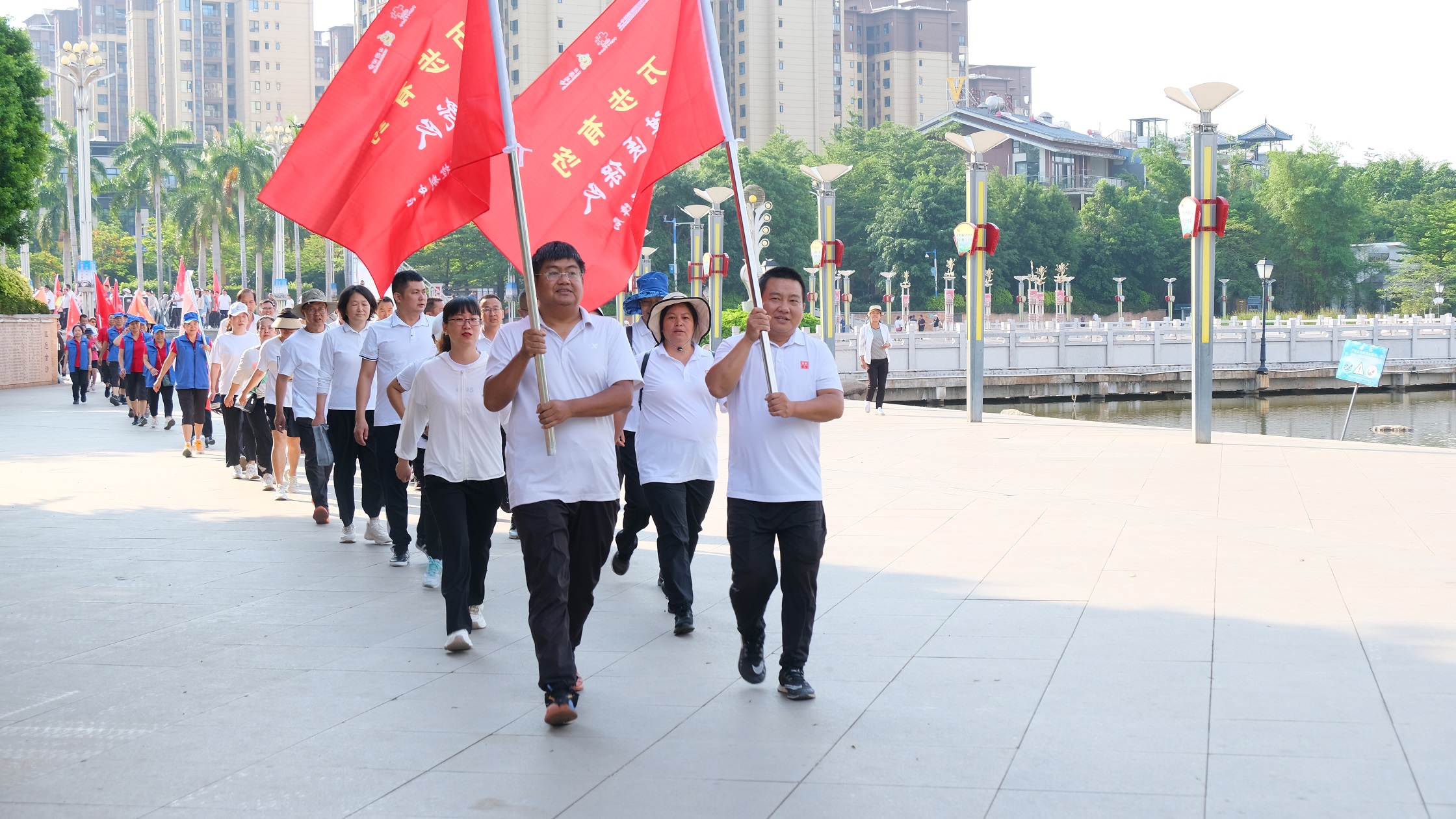 启动仪式结束后,来参加仪式的27支近300人的队伍,在各领队的带领下,大家顶着五月的烈日,高举鲜艳的队旗,迈着铿锵有力的步伐,从元谋凤凰湖广场出发向5公里的目标进军,第一天万步健走激励比赛开始了。