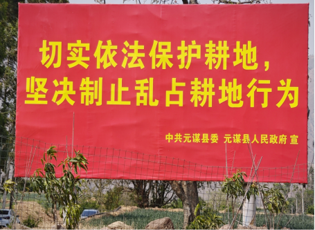 二进“农田”。元谋县自然资源局江边自然资源所结合辖区地域现状和季节特点,走入田间地头一线发放宣传耕地保护宣传折页,在田间地头内选取13个醒目位置设置耕地保护标语,同时制作音像资料利用村庄“大喇叭”进行滚动宣讲播放,向群众讲解耕地保护有关事项,形成全民共同保护耕地的氛围,切实提高广大群众对耕地保护政策的知晓度、参与度。