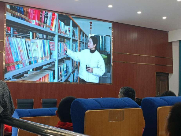 播放了元谋县图书馆宣传片,向孩子们介绍了图书馆的历史背景、服务功能。