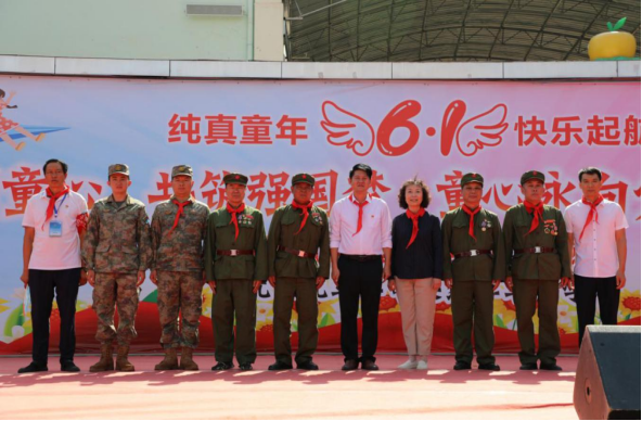 近日,元谋县双拥办组织开展了“庆六一 爱国防,携手共筑强军梦”为主题的系列双拥活动。驻元某部2名校外辅导员和4位老兵宣讲团成员应邀参加了元马革命英烈红军小学少先队新队员入队仪式,为新少先队员系带红领巾,鼓励新少先队员好好学习、争做好学生,与师生共同观看文艺节目表演,欢度“六一”儿童节。