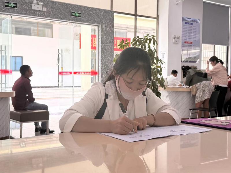 这天,一位前来申请公租房的群众李女士显得焦急,说是表格上的字写错了。旁边工作人员看到后,及时上前把涂改液递了过去,耐心指导她填报,还告知她现场自助填写区还有曲别针、涂改液和笔等小物件可自助使用。李女士接过涂改液,在工作人员帮助下,涂改并正确填写信息,脸上瞬间露出了感激的笑容,连声道谢:“谢谢,你们这里的服务真好。”
