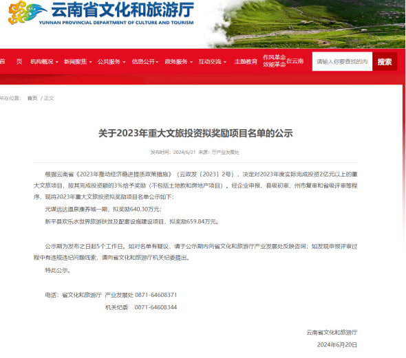 近日,云南省文化和旅游厅正式公示了2023年重大文旅投资拟奖励项目名单,其中,元谋远达温泉康养城(一期)项目以其独特的开发理念和显著的经济效益,荣获了重大文旅项目奖补资金高达640.30万元。这一荣誉的获得,不仅标志着该项目在推动地方文旅融合发展中取得了显著成效,更为元谋县的文旅事业注入了新的活力。