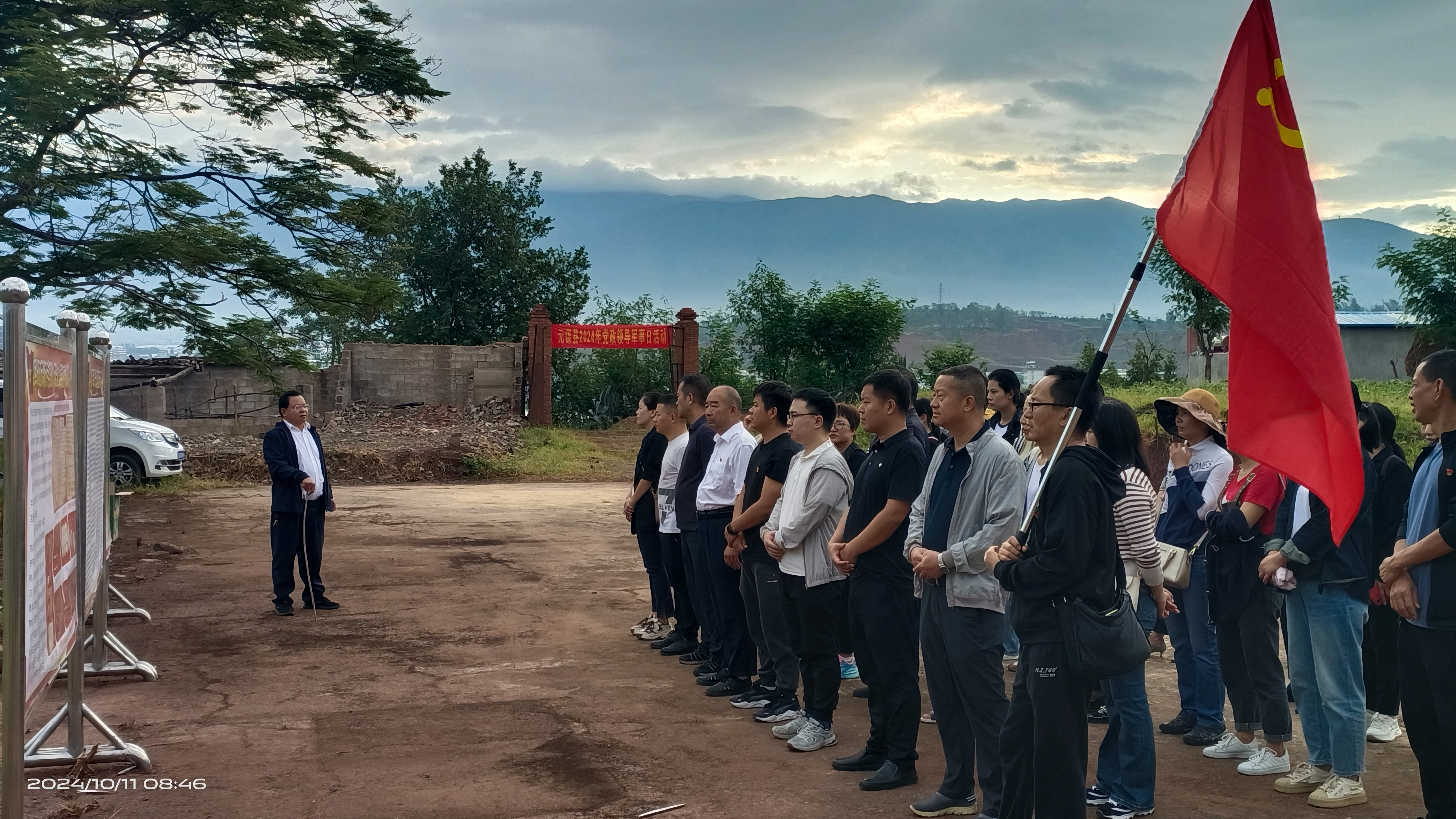 一大早,各党支部就集合好队伍,领队高举鲜艳的党旗,带领党员同志们徒步前往红军长征过元谋县城清安寺学宫(元谋一中、县委党校)旧址参观学习。县志办主任杞自聪同志为党员们生动讲述了红军长征波澜壮阔的浩瀚历史,详细介绍了1935年红军长征过元谋时的件件感人事迹,红军的到来,给元谋留下了许多宝贵“财富”。大家静静站立在清安寺才学宫的旧址废墟上,聆听历史的涛声,老一辈革命先烈浴火奋战、爱民如子、英勇奋斗的革命精神、让参观的党员同志们备受鼓舞。