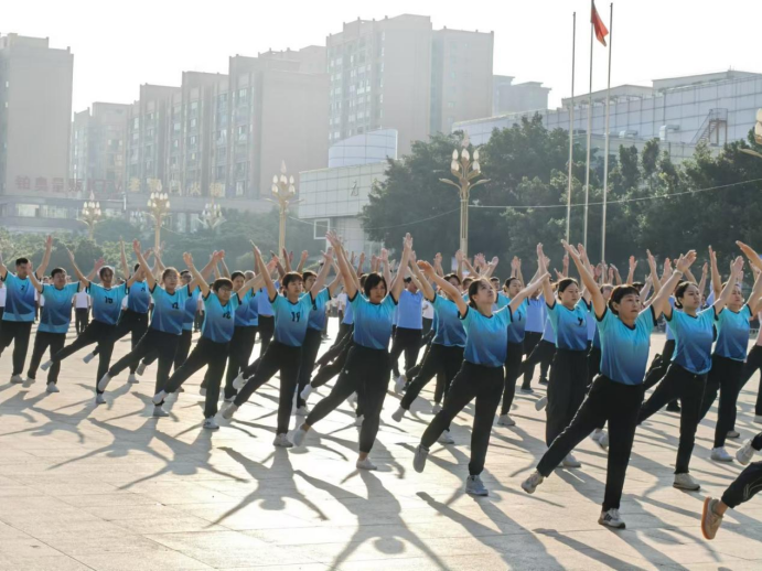 比赛前,元谋县审计局派出14名职工与县总工会组成代表队积极备赛,参赛队员们以高度的集体荣誉感努力克服困难,利用业余时间刻苦训练,一次次练习、一遍遍纠错,保证每个动作都能整齐、规范、有力、到位。比赛现场,他们统一着装,步伐整齐,以“全民健身、舞动人生”为口号,精神饱满、斗志昂扬地走上赛场。随着第九套广播体操的音乐声响起,流畅地展示了伸展、踢腿、体侧、跳跃等系列规范动作,彰显出工间操的力量美,展现出审计人的激情与活力。