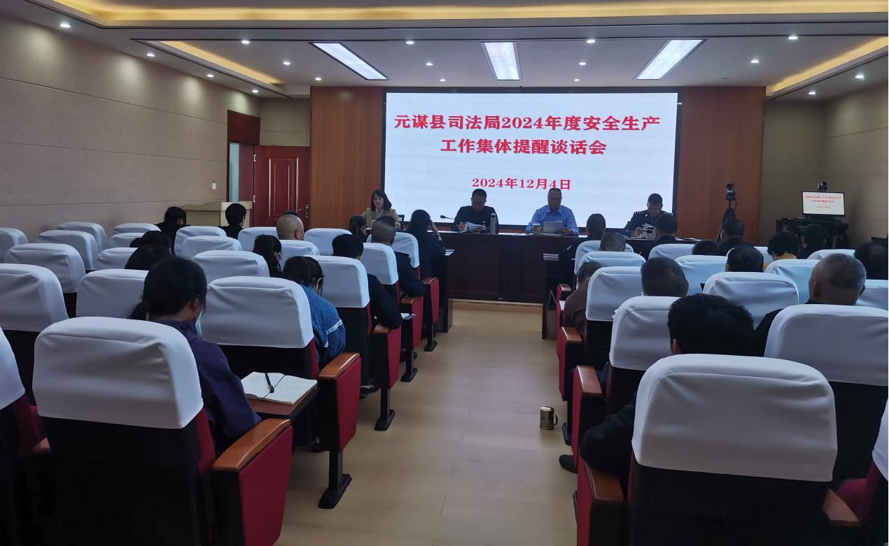 为认真抓好岁末年初以及2025年元旦春节期间安全防范工作,有效加强各类安全风险防范和隐患治理,坚决遏制安全生产事故发生,县司法局于2024年12月4日组织全体干部职工召开2024年度安全生产工作集体提醒谈话会。