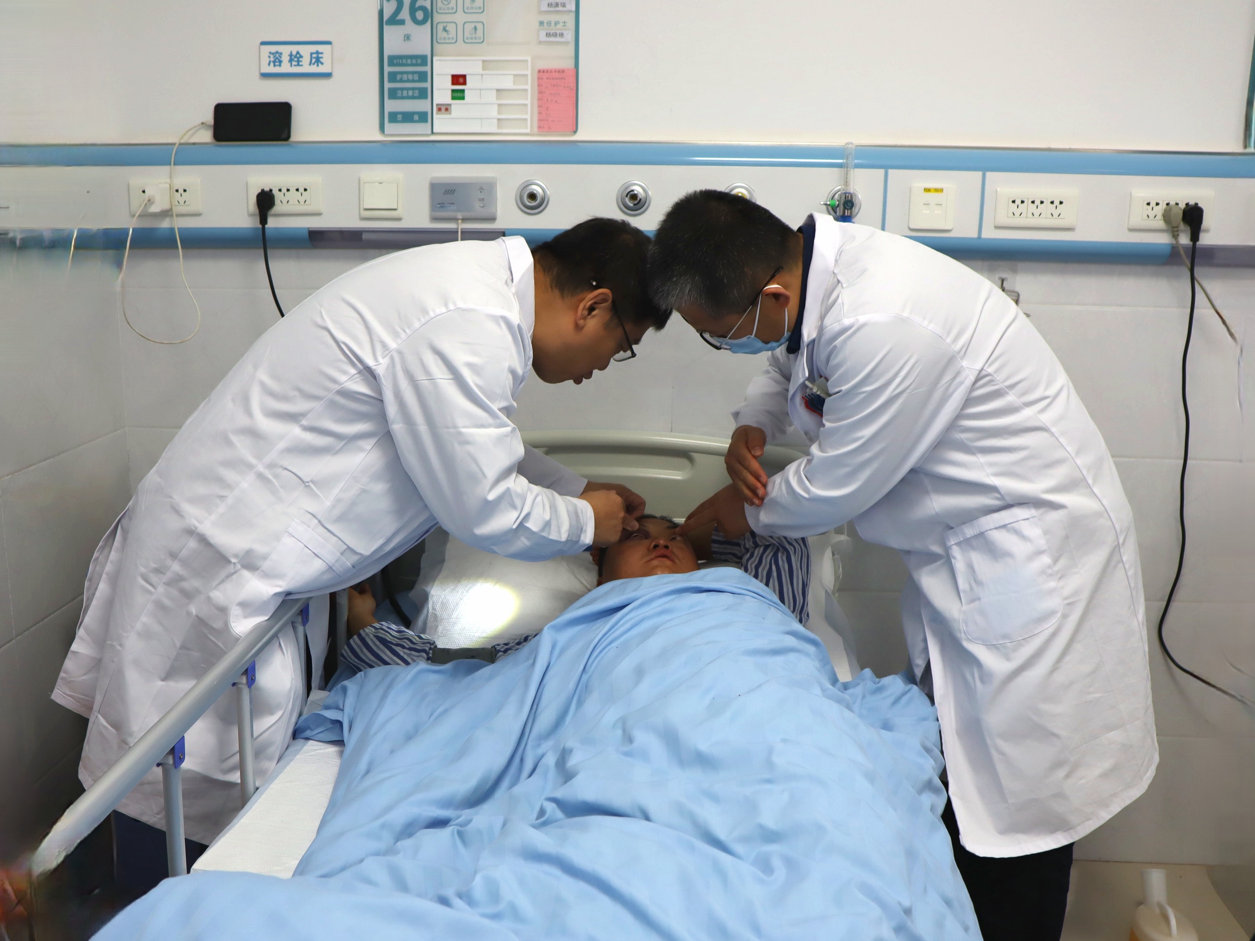 29岁的吴先生(化名),因车祸外伤导致眼眶多发骨折,视神经管骨折,双眼薄层CT 显示骨折致视神经卡压,视神经严重受损。入院时,患者右眼瞳孔散大,对光反射消失,无光感,视力全然丧失,情况危急。元谋县人民医院神经系统疾病科手术团队在接到急诊通知后迅速响应,组织多学科会诊,经过详细的术前评估和精心准备,在欧美同学会医师协会神经外科专家郭东生教授、神经内科专家卢晓东教授和云南省第一人民医院神经外科黄胜全教授的指导下,成功为患者实施了视神经减压术。手术过程顺利,术后患者生命体征平稳。患者在术后第三天能隐约捕捉到物体的移动,能数手指,术后一周,能逐渐看清亲人的面容,视力得到了显著改善。
