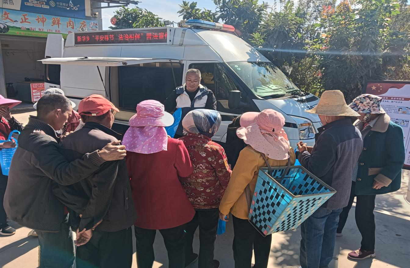 春节将至,为营造安定祥和的节日氛围,进一步增强广大群众的法治观念和法治意识,提升深化普法强基补短板专项行动质效,提高普法针对性和实效性。2024年12月18日,元谋县司法局联合新华乡人民政府,利用新华乡街天群众赶集日,紧抓春节前后返乡、外出高峰重要节点,开展“平安春节,法治相伴”普法基层行活动,为辖区群众度过一个祥和、幸福喜乐的新春佳节营造浓厚的法治氛围。
