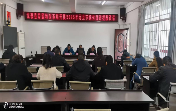 2025年元旦将至,为切实增强全体干部职工廉洁过节意识,筑牢拒腐防变防线,紧绷廉洁自律胘,营造文明节俭的节日气氛,县发展改革局于2024年12月30日召开干部职工会议,对全局干部职工开展元旦节前集体廉政提醒谈话。
