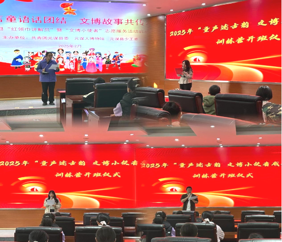 2025年2月13日举行开班仪式,开班仪式上,共青团元谋县委副书记发表动员讲话,对学员们寄予了期望,给予了鼓励;元谋人博物馆馆长发表了热情洋溢的致辞,强调本次活动的重要意义,并对参加此次培训的学员表示了欢迎和殷切的希望。希望学员们能够保持热情,认真聆听老师们的授课,珍惜每一次实践的机会,勇于提问,敢于表达。期待在不久的将来,成为一名优秀的“文博小使者”,随后,讲解员老师详细介绍本次培训内容与教学目标,鼓励青少年儿童勇于挑战自我,并分发志愿者服装、培训资料和学习用具。