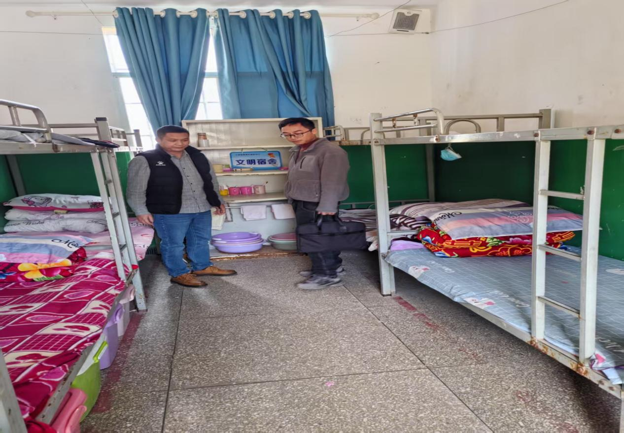 检查组一行重点对学校教学楼、食堂、宿舍等重点区域进行实地查看,详细检查了消防设施、监控设备、食品安全、校园周边环境等方面的情况。