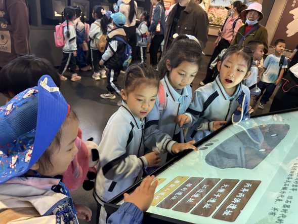 活动当天,小朋友们在老师的带领下整齐有序地进入博物馆。一踏入博物馆,小朋友们立刻被眼前琳琅满目的展品和充满科技感的多媒体交互装置所吸引,他们的眼中闪烁着好奇与兴奋的光芒。在讲解员的耐心讲解下,孩子们依次参观了各个展厅。从远古时期的化石,到4000年前的器型多样的陶器,每一件展品都仿佛在诉说着一段段悠久而动人的故事。