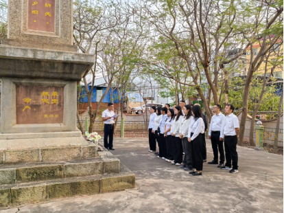 在元谋县水利园,党员干部职工在烈士纪念碑前面碑肃立,向烈士纪念碑默哀、鞠躬行礼、献花,聆听彝州“红旗渠”(元谋县东山大沟)修建的艰辛历程,追忆革命先辈为修建元谋东山大沟而英勇献身的先进事迹,学习和继承革命先辈“以工地为战场,苦干、实干加巧干”,“头可断、血可流,不修通东山大沟不罢休”大无畏精神。