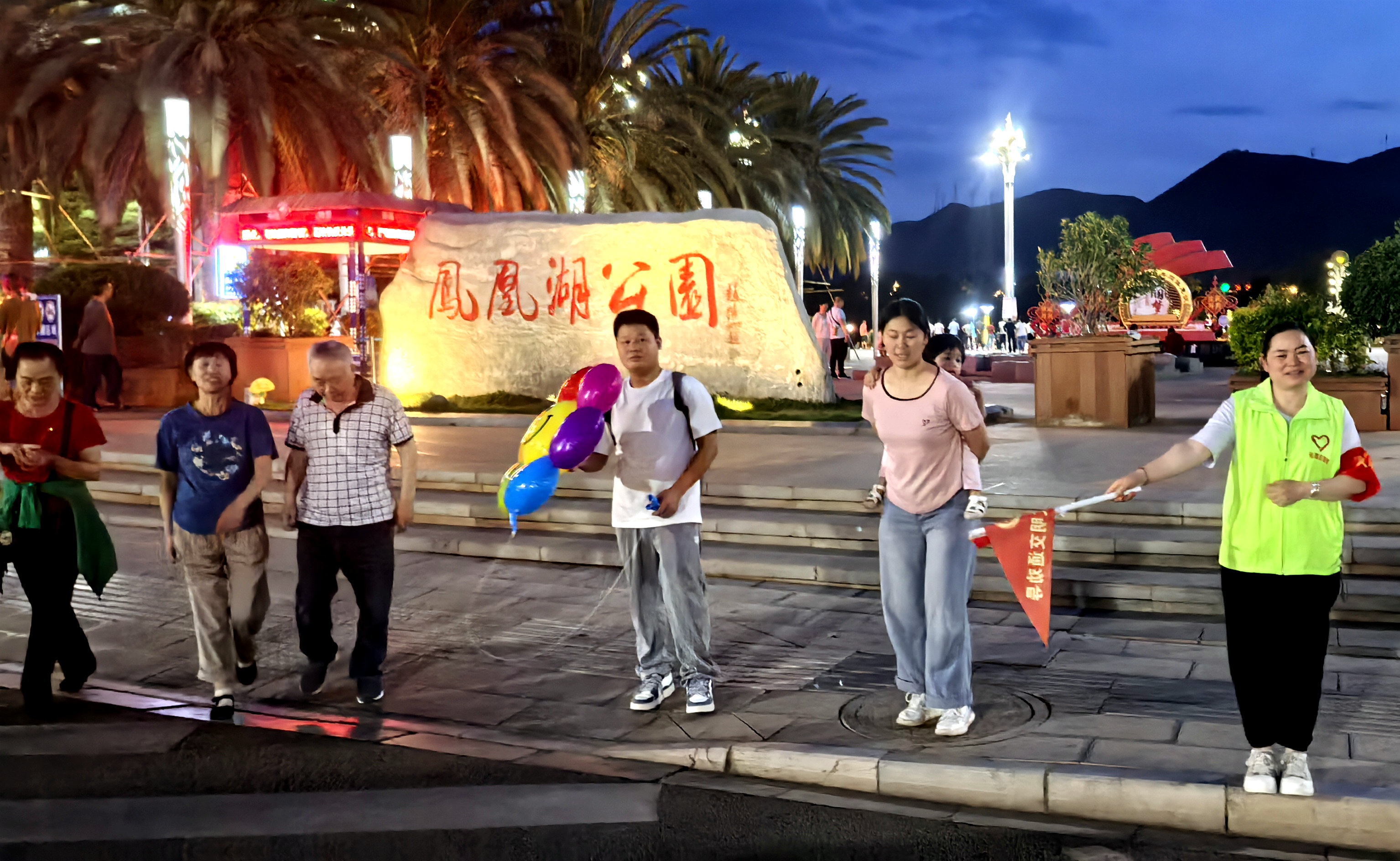 活动期间,医护志愿者们分三组分别驻守在龙川街与马街北路交叉路口(元谋中心客运站外)、滨江大道与元双路交叉路口、凤凰湖公园正大门人行道交叉路口等人流车流密集的交通要道开展劝导服务。他们身着绿马甲,手持引导旗,通过手势指引、语言提示等方式,对行人闯红灯、非机动车逆行等行为进行规劝,并协助老人、儿童安全过马路,以“柔性引导”传递文明温度。